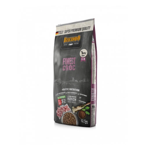 Met de Belcando Finest Croc zet u zo een heerlijke maaltijd klaar voor uw trouwe viervoeter. De brokken zijn gemaakt van speciaal geselecteerde grondstoffen met eend, lever, veel licht verteerbare rijst en koudgeperste druivenpitmeel. Het hoge eiwit- en vetaandeel stimuleren de spijsvertering en verminderen de hoeveelheid ontlasting. Wanneer u als verhouding 3/4 aan brokken en 1/4 aan warm water (40-50 °C) aanhoudt, vormt er zich een heerlijk sausje over de brokken.