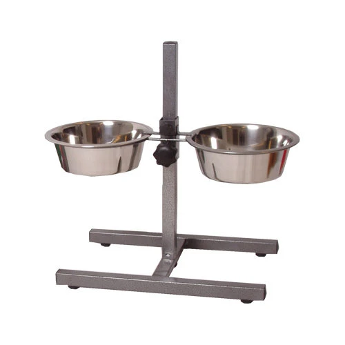 Standaard met drink- en voerbak met een diameter van 17 of 21 cm.