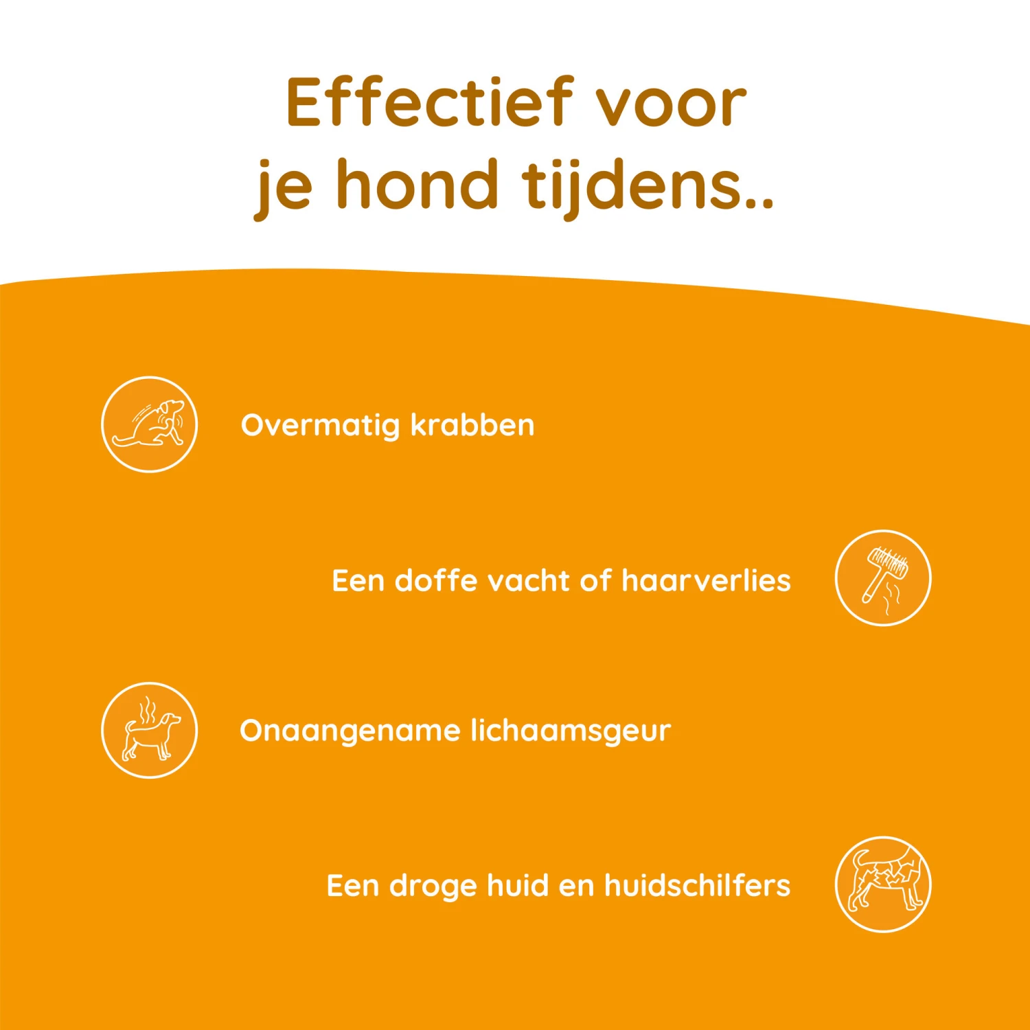 Koudgeperste olie voor een gezonde huid en vacht Biedt ondersteuning bij jeuk, droge huid, hotspots, haaruitval of een doffe vacht Op basis van natuurlijke ingrediënten zoals lijnzaadolie en borage olie Makkelijk toe te voegen aan de dagelijkse maaltijd met behulp van doseerpomp Geschikt voor alle leeftijden; ook puppy’s