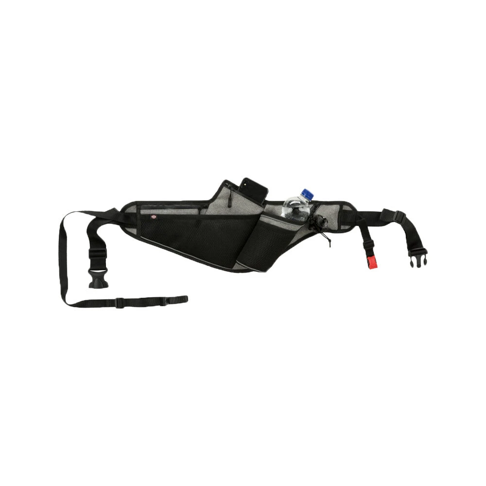 Omdat het veel leuker is om samen met uw viervoeter te joggen, walken of fietsen is er de Trixie Jogging Riem met Leiband. Deze ceintuur heeft een makkelijk aanlijn-systeem waardoor de impact van het trekken van de hond gelijkmatig over de taille van de loper wordt verdeeld. Ook wordt het plotseling trekken van de hond door een schokdemper opgevangen. De Joggingceintuur heeft een aangenaam draagcomfort door het ergonomisch ontwerp en een zacht inzetstuk gemaakt van mesh. De ceintuur beschikt over diverse vakken en een bekerhouder, waterdichte ritssluitingen en een geïntegreerde poepzakjes-dispenser.